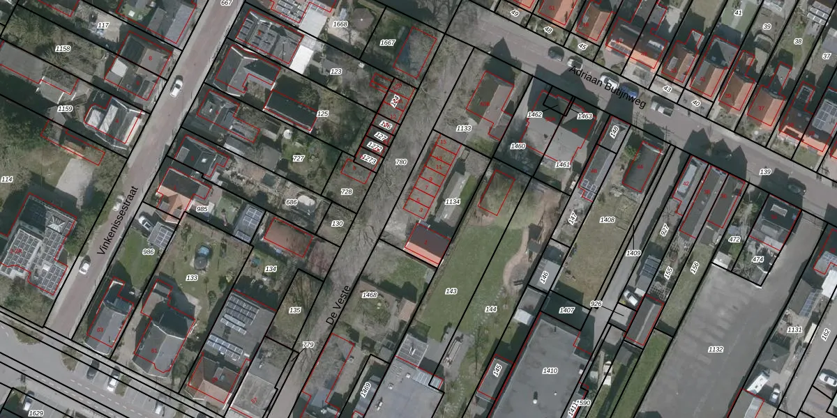 Het perceel waarop De Veste 3 staat heeft een oppervlakte van 449 m². Dit is een groot perceel. De perceeloppervlakte wordt geregistreerd door het Kadaster. Gedetailleerde informatie over de maten van dit perceel kunt u vinden in het rapport Kadastrale kaart met maatvoering van De Veste 3.