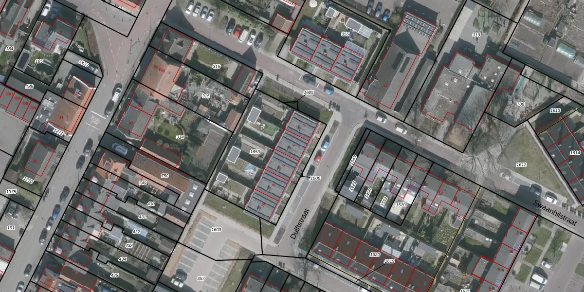 Het perceel waarop Dulftstraat 4 staat heeft een oppervlakte van 1060 m². Dit is een zeer groot perceel. De perceeloppervlakte wordt geregistreerd door het Kadaster. Gedetailleerde informatie over de maten van dit perceel kunt u vinden in het rapport Kadastrale kaart met maatvoering van Dulftstraat 4.