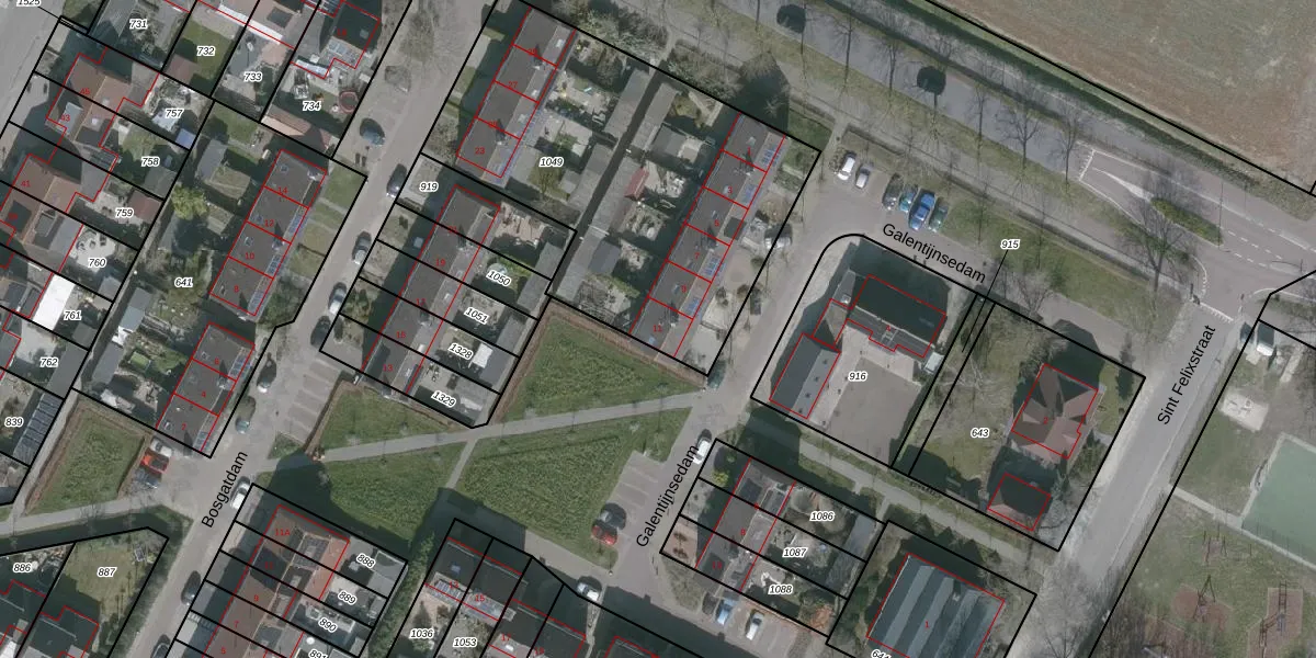 Het perceel waarop Galentijnsedam 11 staat heeft een oppervlakte van 1794 m². Dit is een zeer groot perceel. De perceeloppervlakte wordt geregistreerd door het Kadaster. Gedetailleerde informatie over de maten van dit perceel kunt u vinden in het rapport Kadastrale kaart met maatvoering van Galentijnsedam 11.