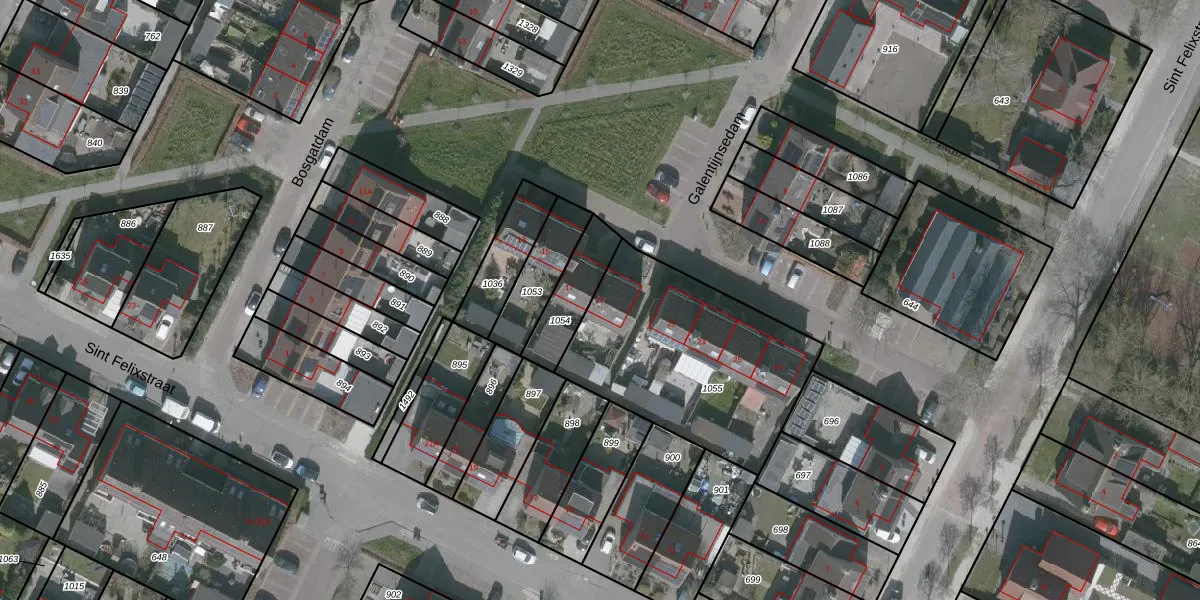 Het perceel waarop Galentijnsedam 19 staat heeft een oppervlakte van 930 m². Dit is een groot perceel. De perceeloppervlakte wordt geregistreerd door het Kadaster. Gedetailleerde informatie over de maten van dit perceel kunt u vinden in het rapport Kadastrale kaart met maatvoering van Galentijnsedam 19.