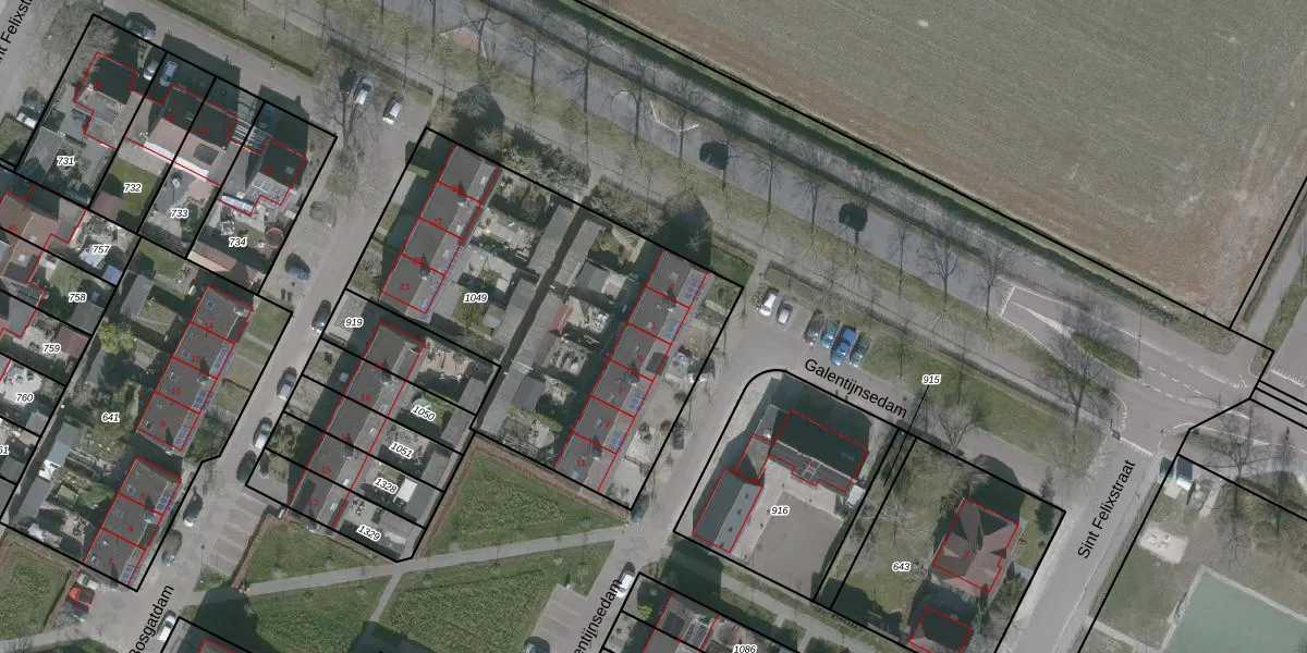 Het perceel waarop Galentijnsedam 3 staat heeft een oppervlakte van 1794 m². Dit is een zeer groot perceel. De perceeloppervlakte wordt geregistreerd door het Kadaster. Gedetailleerde informatie over de maten van dit perceel kunt u vinden in het rapport Kadastrale kaart met maatvoering van Galentijnsedam 3.
