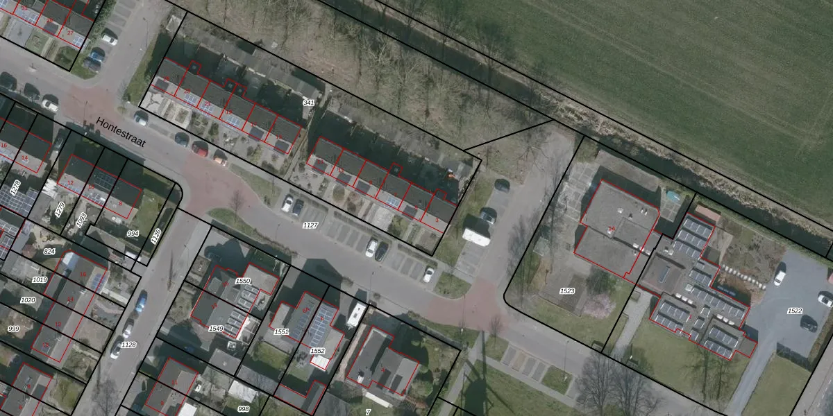 Het perceel waarop Hontestraat 5 staat heeft een oppervlakte van 2060 m². Dit is een zeer groot perceel. De perceeloppervlakte wordt geregistreerd door het Kadaster. Gedetailleerde informatie over de maten van dit perceel kunt u vinden in het rapport Kadastrale kaart met maatvoering van Hontestraat 5.
