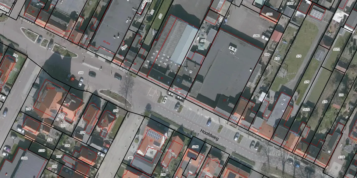 Het perceel waarop Hoofdweg 33 staat heeft een oppervlakte van 510 m². Dit is een groot perceel. De perceeloppervlakte wordt geregistreerd door het Kadaster. Gedetailleerde informatie over de maten van dit perceel kunt u vinden in het rapport Kadastrale kaart met maatvoering van Hoofdweg 33.