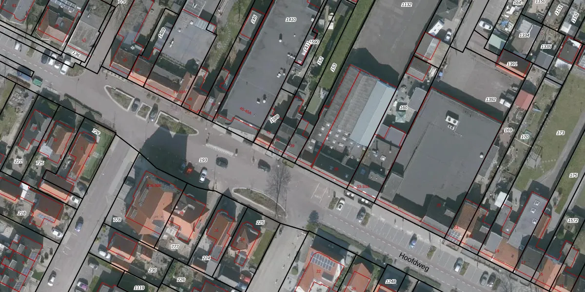 Het perceel waarop Hoofdweg 39 staat heeft een oppervlakte van 331 m². Dit is een groot perceel. De perceeloppervlakte wordt geregistreerd door het Kadaster. Gedetailleerde informatie over de maten van dit perceel kunt u vinden in het rapport Kadastrale kaart met maatvoering van Hoofdweg 39.