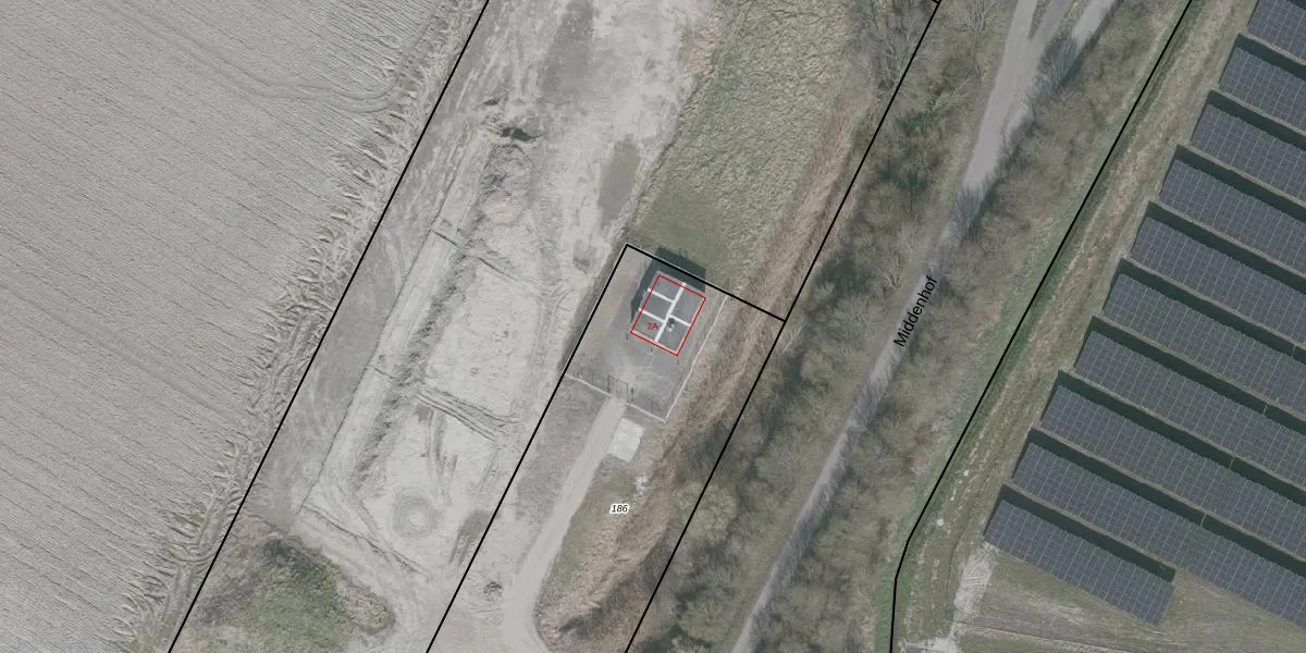 Middenhof 2-A is gelegen op kadastraal perceel RMW00T186. Deze kadastrale aanduiding is uniek en wordt gebruikt door het Kadaster om eigendomsrechten en andere zakelijke rechten vast te leggen. Het perceel maakt onderdeel uit van de kadastrale gemeente Reimerswaal.
