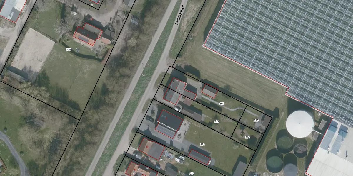 Het perceel waarop Middenhof 5 staat heeft een oppervlakte van 560 m². Dit is een groot perceel. De perceeloppervlakte wordt geregistreerd door het Kadaster. Gedetailleerde informatie over de maten van dit perceel kunt u vinden in het rapport Kadastrale kaart met maatvoering van Middenhof 5.