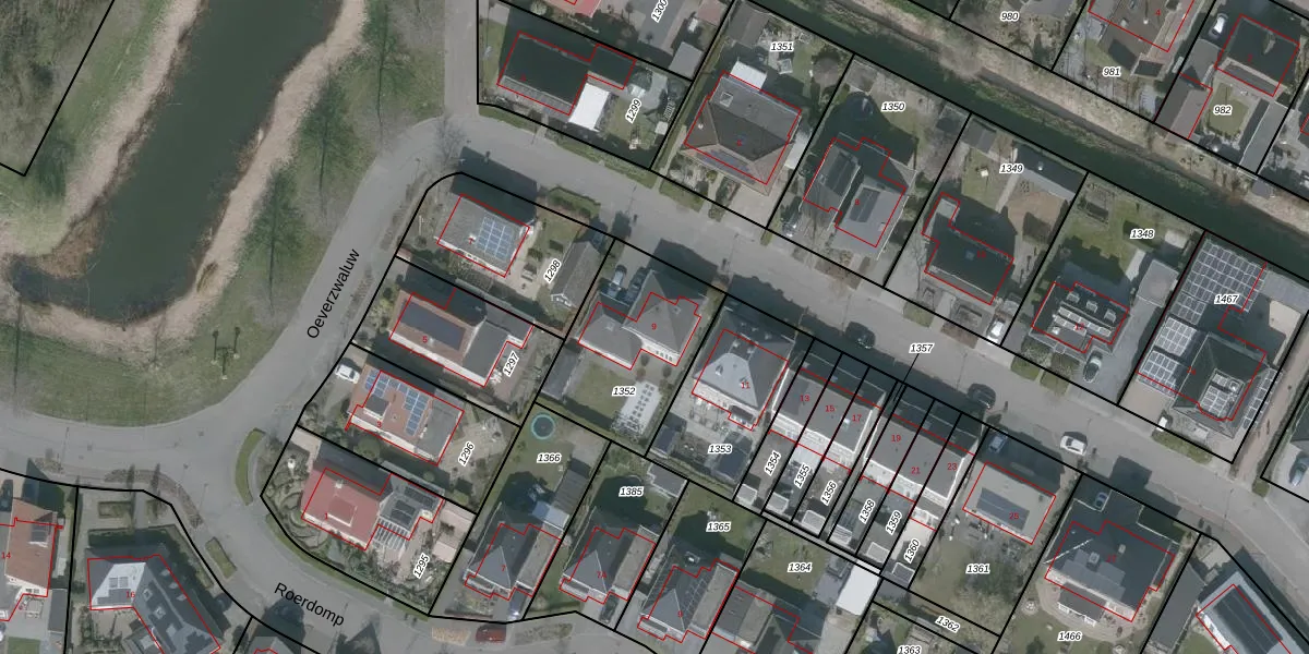 Gebruik de zoekbalk of klik op een perceel voor informatie over de adressen binnen dit perceel.
