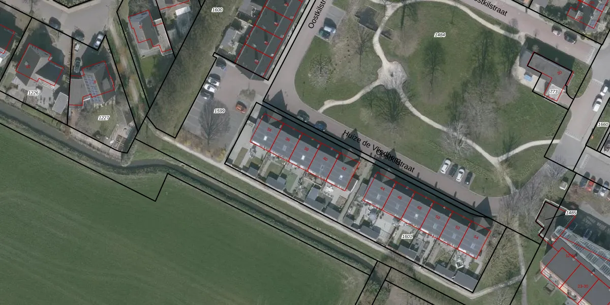 Het perceel waarop Oostkilstraat 38 staat heeft een oppervlakte van 2090 m². Dit is een zeer groot perceel. De perceeloppervlakte wordt geregistreerd door het Kadaster. Gedetailleerde informatie over de maten van dit perceel kunt u vinden in het rapport Kadastrale kaart met maatvoering van Oostkilstraat 38.