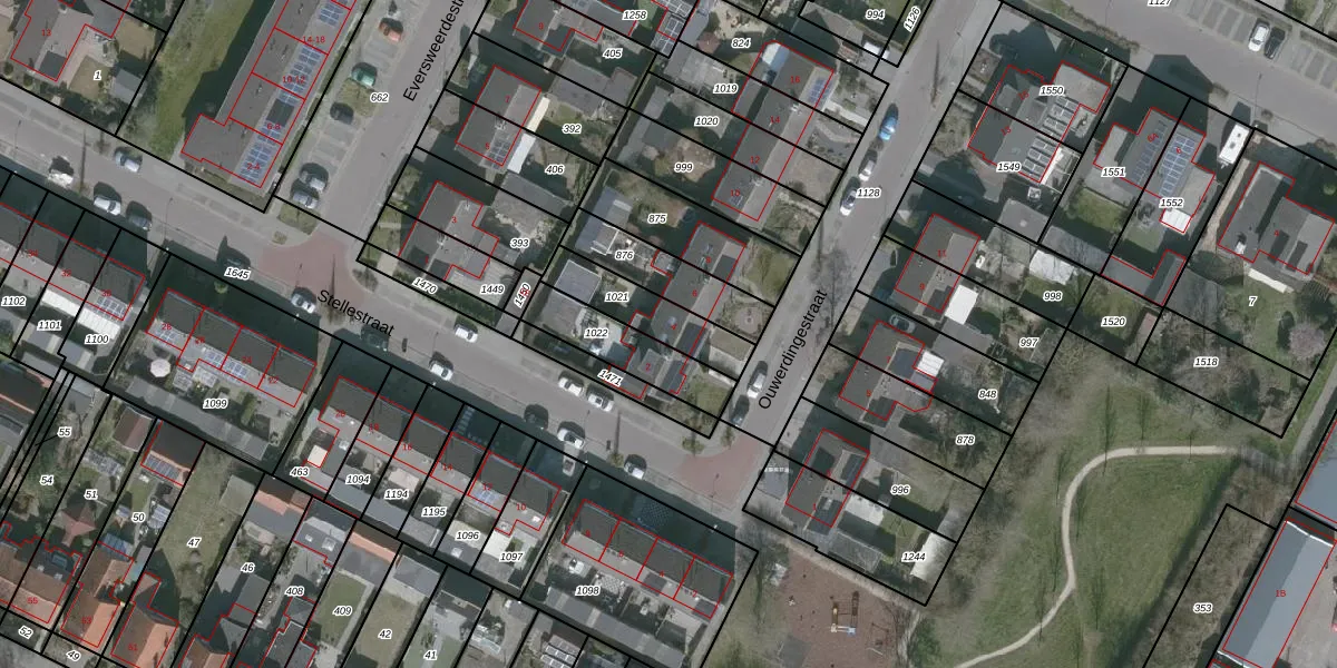 Gebruik de zoekbalk of klik op een perceel voor informatie over de adressen binnen dit perceel.