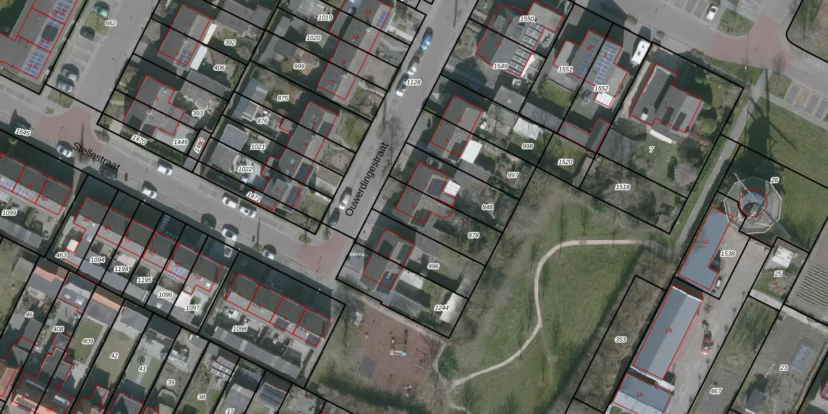 Gebruik de zoekbalk of klik op een perceel voor informatie over de adressen binnen dit perceel.
