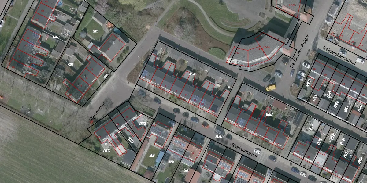 Rietlandstraat 9 is gelegen op kadastraal perceel RLD00R1323. Deze kadastrale aanduiding is uniek en wordt gebruikt door het Kadaster om eigendomsrechten en andere zakelijke rechten vast te leggen. Het perceel maakt onderdeel uit van de kadastrale gemeente Rilland.