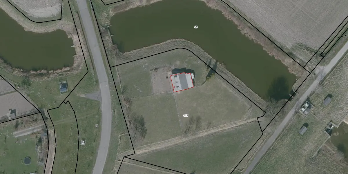 Het adres is gelegen op perceel 523 in de sectie M en de kadastrale gemeente Reimerswaal. De kadastrale aanduiding is aldus RMW00-M-523. De gemiddelde perceelgrootte in Reimerswaal is 2,0 ha. Dit perceel is kleiner: de perceeloppervlakte bedraagt 4607 m². Het grootste perceel in de kadastrale gemeente is 11,11 km². Het kleinste perceel heeft een oppervlakte van 1 m². Op het perceel bevinden zich geen andere adressen. In de Basisregistratie Kadaster (BRK) werden de grenzen van het perceel geregistreerd op 14-03-2017.