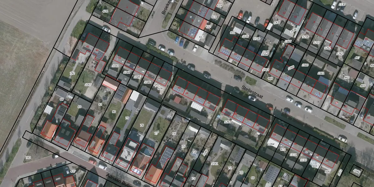 Het perceel waarop Stellestraat 66 staat heeft een oppervlakte van 1266 m². Dit is een zeer groot perceel. De perceeloppervlakte wordt geregistreerd door het Kadaster. Gedetailleerde informatie over de maten van dit perceel kunt u vinden in het rapport Kadastrale kaart met maatvoering van Stellestraat 66.