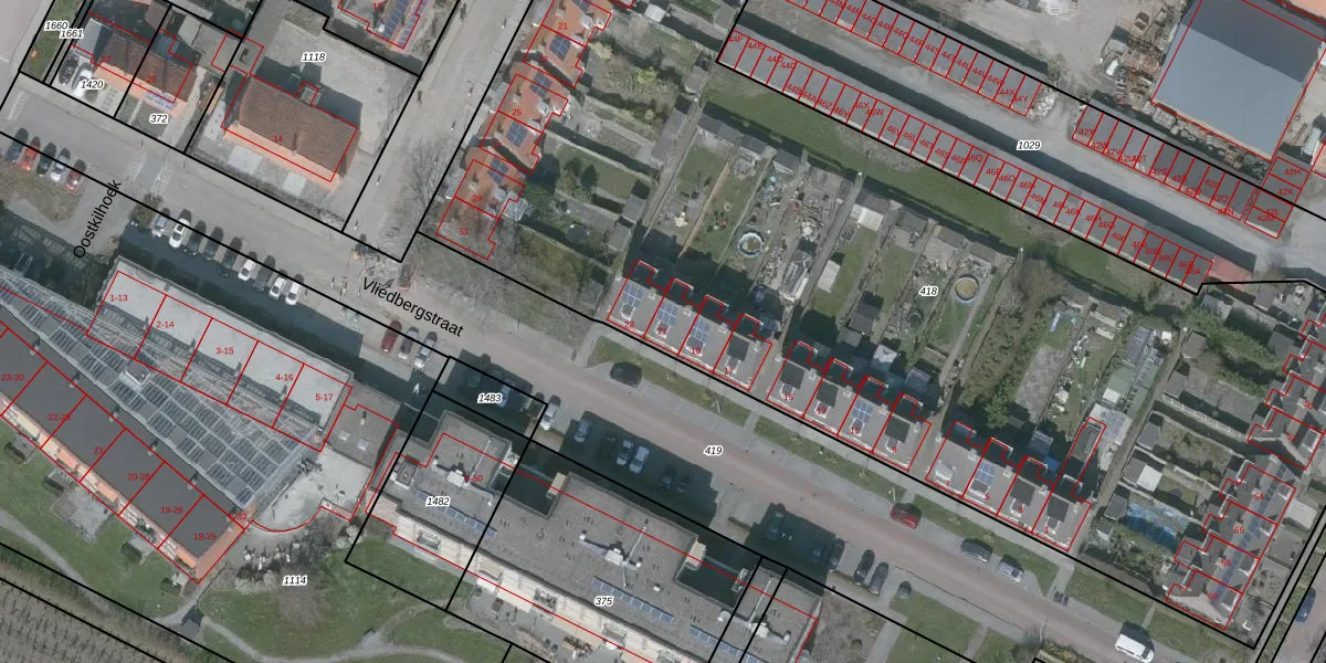 Vliedbergstraat 21 is gelegen op kadastraal perceel RLD00R418. Deze kadastrale aanduiding is uniek en wordt gebruikt door het Kadaster om eigendomsrechten en andere zakelijke rechten vast te leggen. Het perceel maakt onderdeel uit van de kadastrale gemeente Rilland.