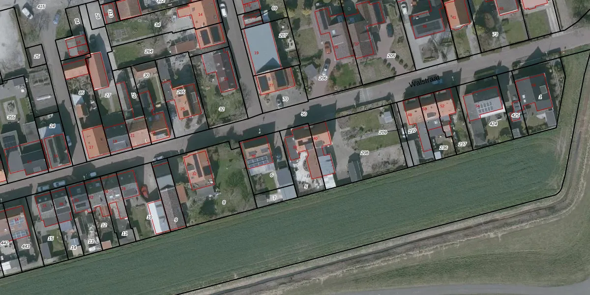 Het perceel waarop Walstraat 38 staat heeft een oppervlakte van 225 m². Dit is een middelgroot perceel. De perceeloppervlakte wordt geregistreerd door het Kadaster. Gedetailleerde informatie over de maten van dit perceel kunt u vinden in het rapport Kadastrale kaart met maatvoering van Walstraat 38.