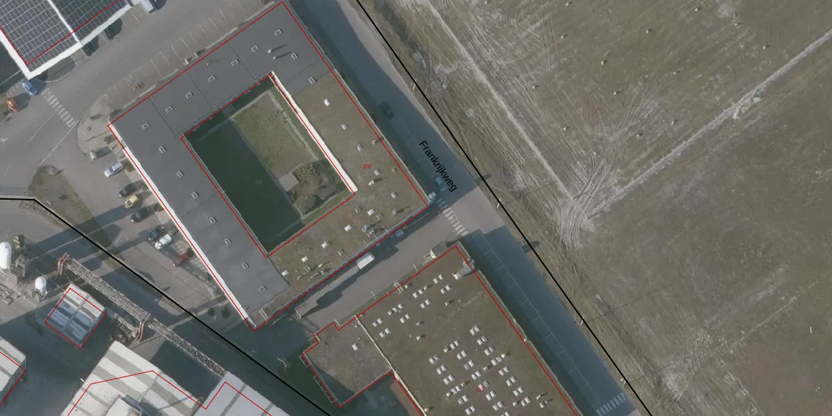 Het perceel waarop Frankrijkweg 2-8 staat heeft een oppervlakte van 16,5 ha. Dit is een zeer groot perceel. De perceeloppervlakte wordt geregistreerd door het Kadaster. Gedetailleerde informatie over de maten van dit perceel kunt u vinden in het rapport Kadastrale kaart met maatvoering van Frankrijkweg 2-8.
