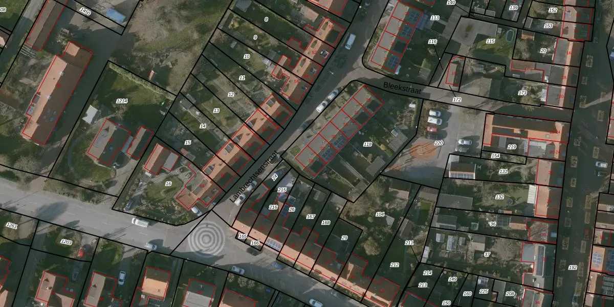 Het perceel waarop Lambrechtsenstraat 39 staat heeft een oppervlakte van 1045 m². Dit is een zeer groot perceel. De perceeloppervlakte wordt geregistreerd door het Kadaster. Gedetailleerde informatie over de maten van dit perceel kunt u vinden in het rapport Kadastrale kaart met maatvoering van Lambrechtsenstraat 39.