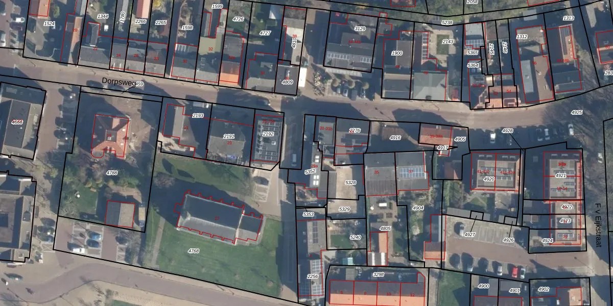 Gebruik de zoekbalk of klik op een perceel voor informatie over de adressen binnen dit perceel.
