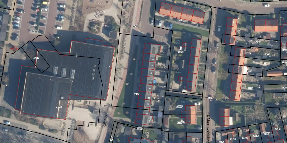 Het perceel waarop Kolpapad 9 staat heeft een oppervlakte van 1955 m². Dit is een zeer groot perceel. De perceeloppervlakte wordt geregistreerd door het Kadaster. Gedetailleerde informatie over de maten van dit perceel kunt u vinden in het rapport Kadastrale kaart met maatvoering van Kolpapad 9.