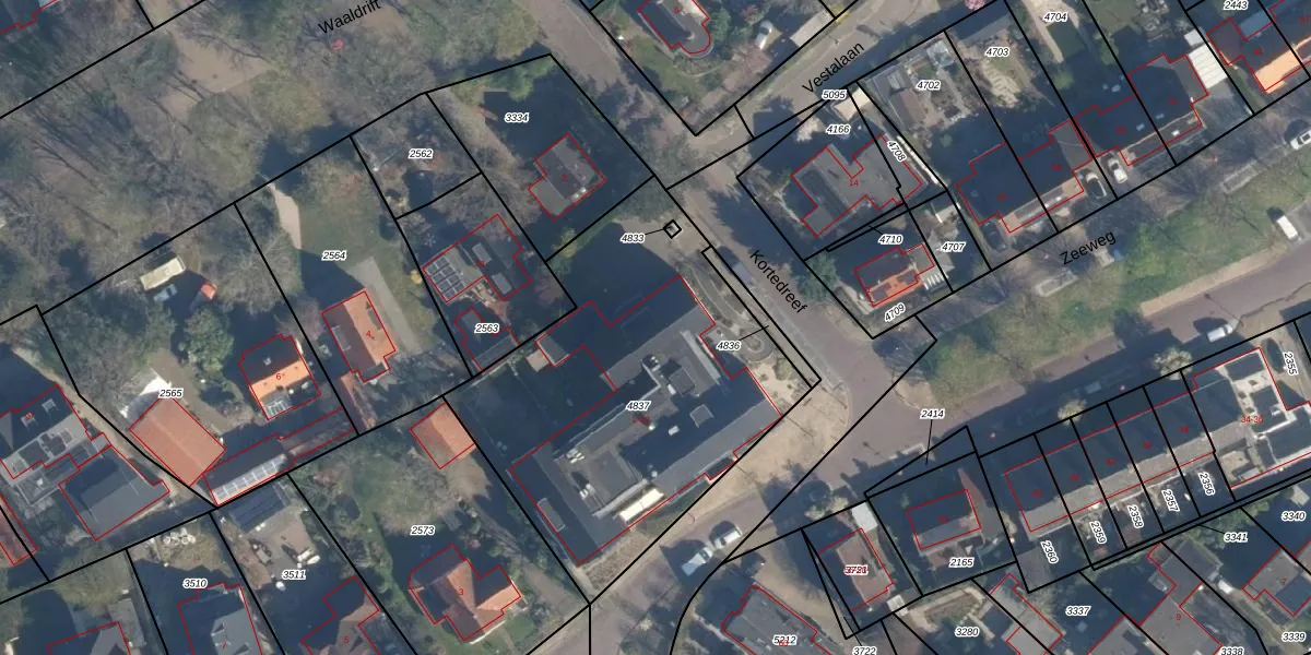 Kortedreef 8 is gelegen op kadastraal perceel RKJ00C4837. Deze kadastrale aanduiding is uniek en wordt gebruikt door het Kadaster om eigendomsrechten en andere zakelijke rechten vast te leggen. Het perceel maakt onderdeel uit van de kadastrale gemeente Rockanje.
