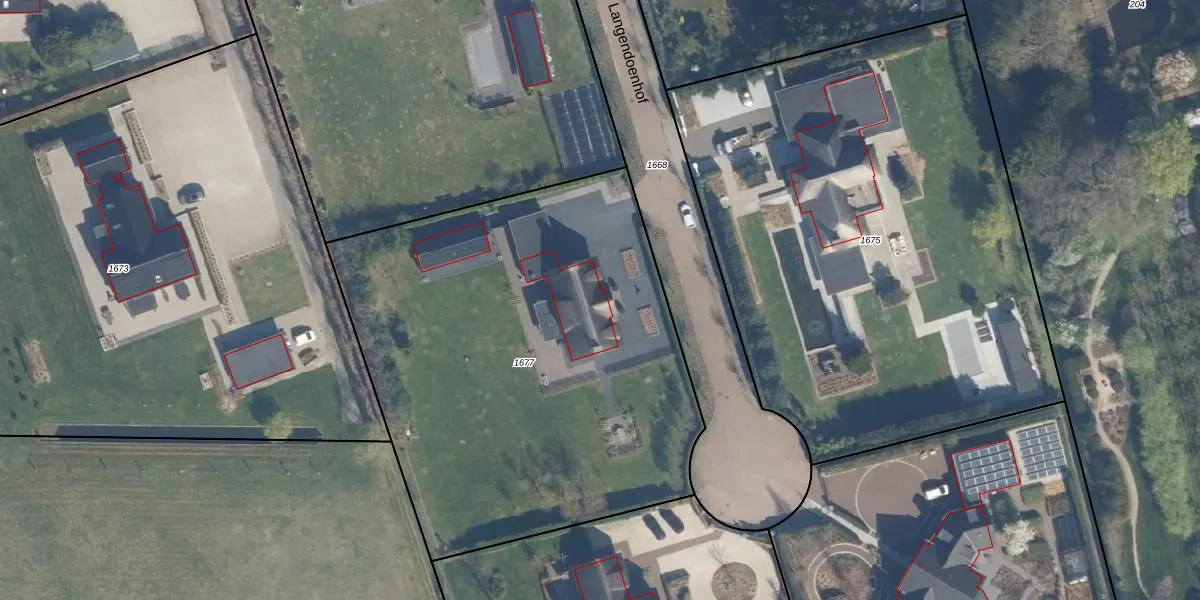 Langendoenhof 1 is gelegen op kadastraal perceel WVN00B1677. Deze kadastrale aanduiding is uniek en wordt gebruikt door het Kadaster om eigendomsrechten en andere zakelijke rechten vast te leggen. Het perceel maakt onderdeel uit van de kadastrale gemeente Westvoorne.