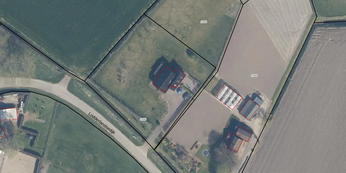 Het perceel waarop Lodderlandsedijk 16-a staat heeft een oppervlakte van 3000 m². Dit is een zeer groot perceel. De perceeloppervlakte wordt geregistreerd door het Kadaster. Gedetailleerde informatie over de maten van dit perceel kunt u vinden in het rapport Kadastrale kaart met maatvoering van Lodderlandsedijk 16-a.