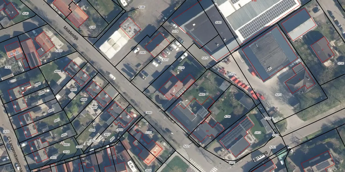 Middeldijk 18 is gelegen op kadastraal perceel RKJ00C5376. Deze kadastrale aanduiding is uniek en wordt gebruikt door het Kadaster om eigendomsrechten en andere zakelijke rechten vast te leggen. Het perceel maakt onderdeel uit van de kadastrale gemeente Rockanje.