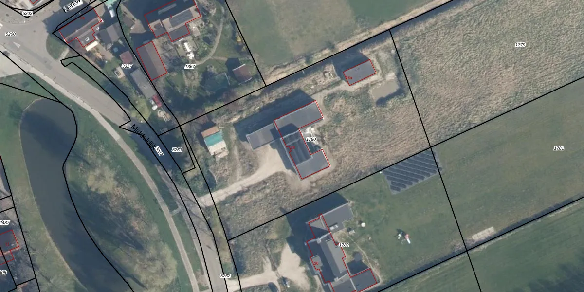 Het perceel waarop Middeldijk 28 staat heeft een oppervlakte van 3290 m². Dit is een zeer groot perceel. De perceeloppervlakte wordt geregistreerd door het Kadaster. Gedetailleerde informatie over de maten van dit perceel kunt u vinden in het rapport Kadastrale kaart met maatvoering van Middeldijk 28.