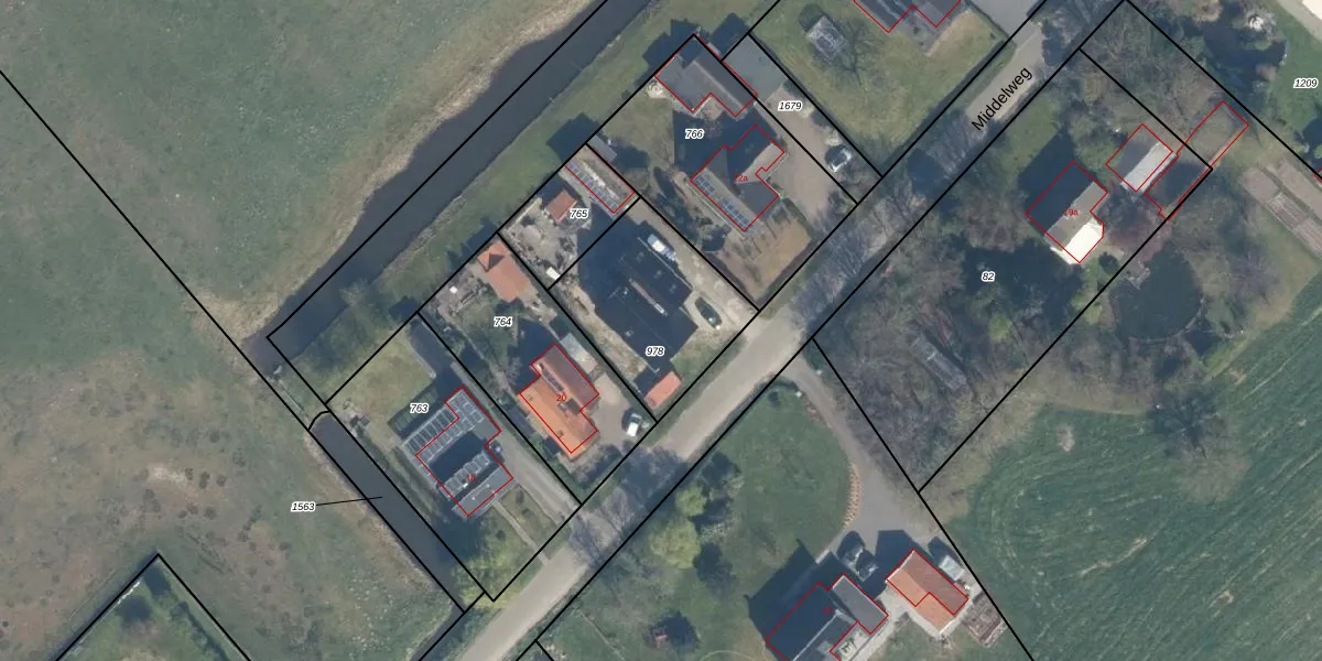 Het perceel waarop Middelweg 22 staat heeft een oppervlakte van 560 m². Dit is een groot perceel. De perceeloppervlakte wordt geregistreerd door het Kadaster. Gedetailleerde informatie over de maten van dit perceel kunt u vinden in het rapport Kadastrale kaart met maatvoering van Middelweg 22.