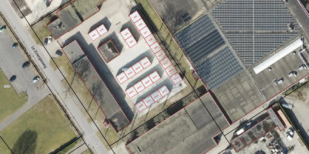 Het perceel waarop 1e Energieweg 10-21 staat heeft een oppervlakte van 6113 m². Dit is een zeer groot perceel. De perceeloppervlakte wordt geregistreerd door het Kadaster. Gedetailleerde informatie over de maten van dit perceel kunt u vinden in het rapport Kadastrale kaart met maatvoering van 1e Energieweg 10-21.