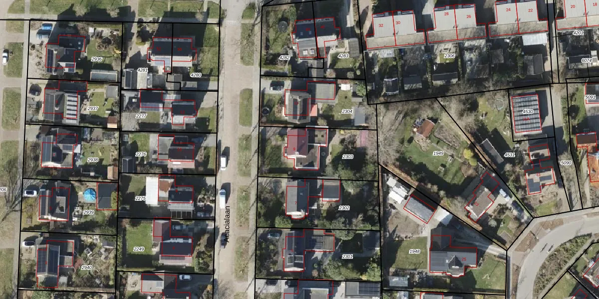 Het perceel waarop Acacialaan 9 staat heeft een oppervlakte van 676 m². Dit is een groot perceel. De perceeloppervlakte wordt geregistreerd door het Kadaster. Gedetailleerde informatie over de maten van dit perceel kunt u vinden in het rapport Kadastrale kaart met maatvoering van Acacialaan 9.