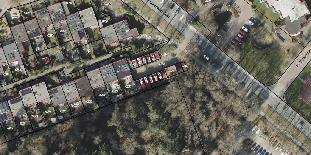 Het adres ligt op het perceel RDN01-I-5100, dat zich in de kadastrale gemeente Roden bevindt. Het perceel is 16 m² groot. Dat is kleiner dan de gemiddelde perceeloppervlakte in Roden, dat op 5510,59 m² ligt. Het grootste perceel in de kadastrale gemeente is 1,51 km². Het kleinste perceel heeft een oppervlakte van 0 m². Op het perceel bevinden zich geen andere adressen. De huidige grenzen van het perceel zijn digitaal in de Basisregistratie Kadaster (BRK) geregistreerd op 19-10-2004.