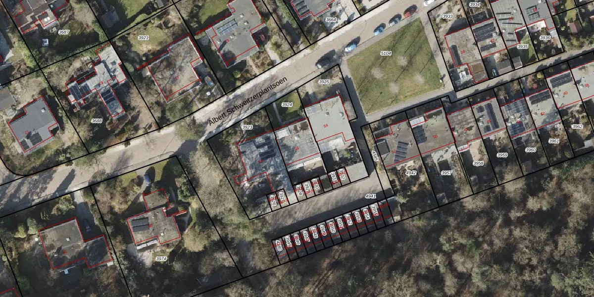 Albert Schweitzerplantsoen 56 is gelegen op kadastraal perceel RDN01I3924. Deze kadastrale aanduiding is uniek en wordt gebruikt door het Kadaster om eigendomsrechten en andere zakelijke rechten vast te leggen. Het perceel maakt onderdeel uit van de kadastrale gemeente Roden.