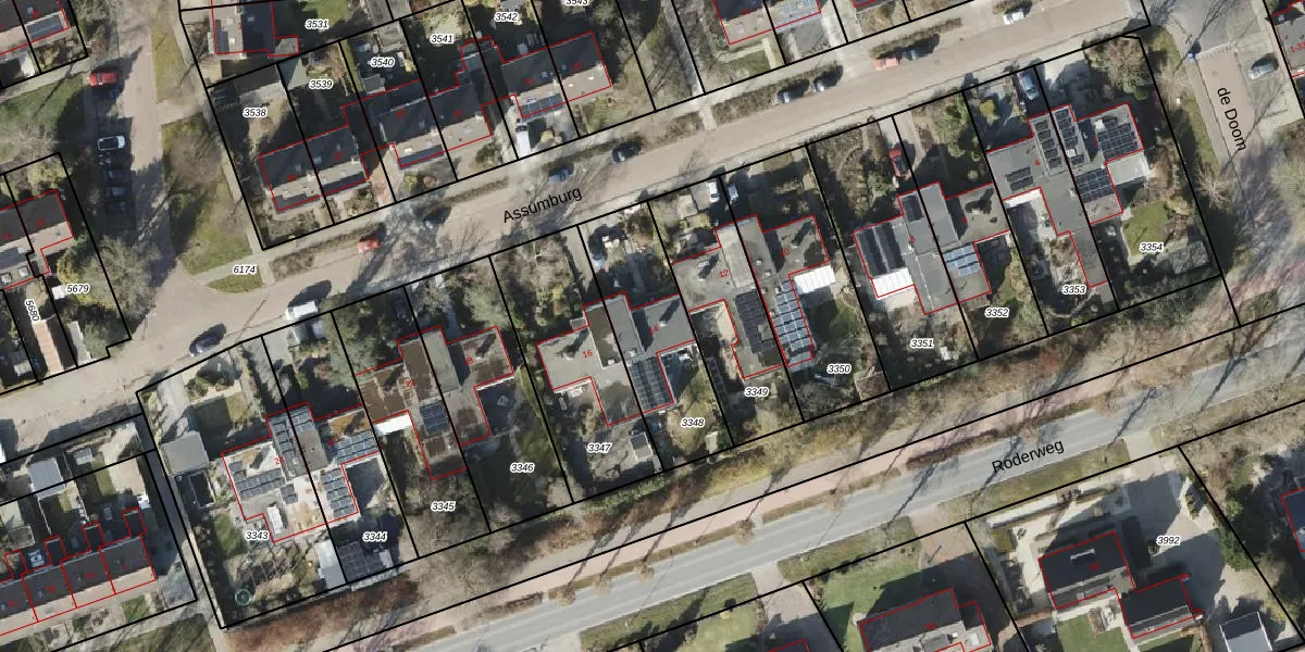 Assumburg 14 is gelegen op kadastraal perceel RDN01K3348. Deze kadastrale aanduiding is uniek en wordt gebruikt door het Kadaster om eigendomsrechten en andere zakelijke rechten vast te leggen. Het perceel maakt onderdeel uit van de kadastrale gemeente Roden.