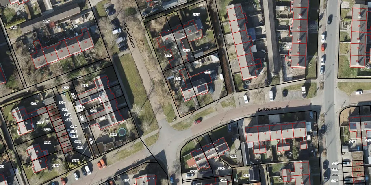 Bakkerstraat 15 is gelegen op kadastraal perceel RDN01I3718. Deze kadastrale aanduiding is uniek en wordt gebruikt door het Kadaster om eigendomsrechten en andere zakelijke rechten vast te leggen. Het perceel maakt onderdeel uit van de kadastrale gemeente Roden.