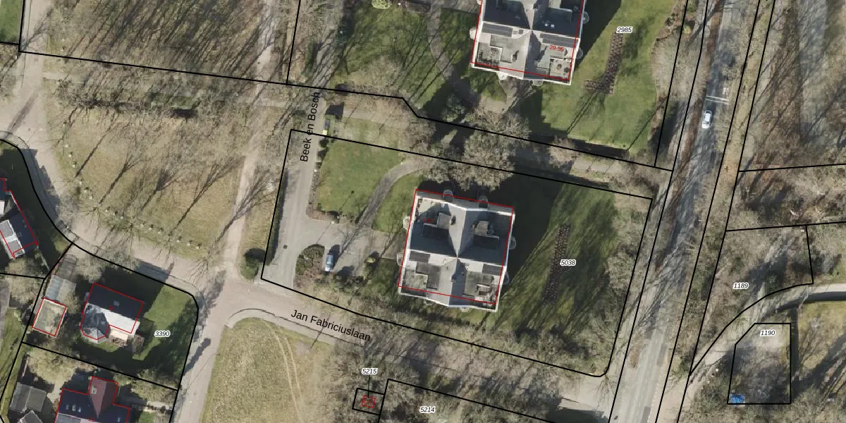 Het perceel waarop Beek en Bosch 1 staat heeft een oppervlakte van 3500 m². Dit is een zeer groot perceel. De perceeloppervlakte wordt geregistreerd door het Kadaster. Gedetailleerde informatie over de maten van dit perceel kunt u vinden in het rapport Kadastrale kaart met maatvoering van Beek en Bosch 1.