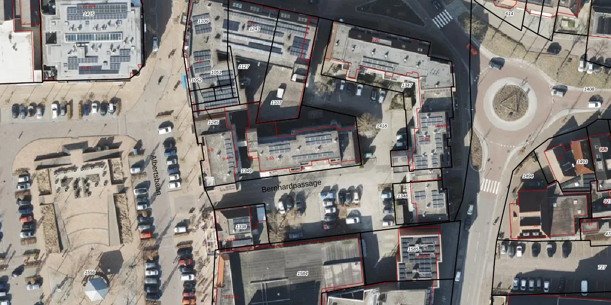 Het perceel waarop Bernhardpassage 21 staat heeft een oppervlakte van 1101 m². Dit is een zeer groot perceel. De perceeloppervlakte wordt geregistreerd door het Kadaster. Gedetailleerde informatie over de maten van dit perceel kunt u vinden in het rapport Kadastrale kaart met maatvoering van Bernhardpassage 21.