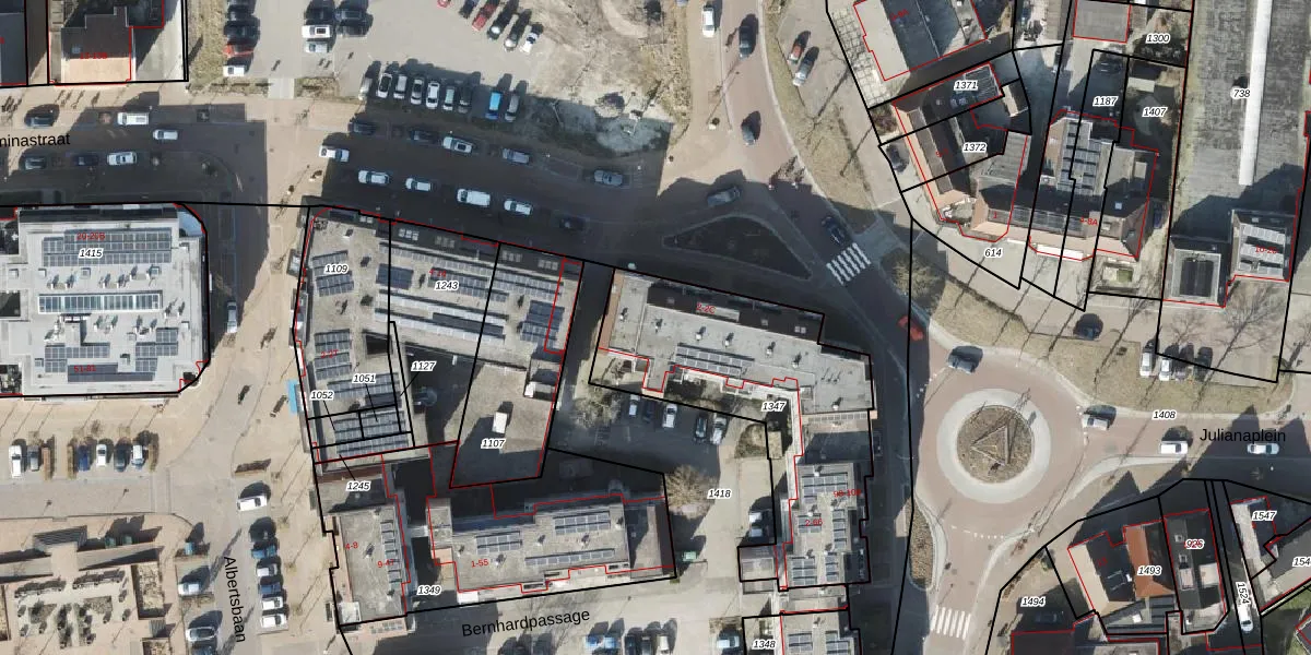 Het perceel waarop Bernhardpassage 30 staat heeft een oppervlakte van 1090 m². Dit is een zeer groot perceel. De perceeloppervlakte wordt geregistreerd door het Kadaster. Gedetailleerde informatie over de maten van dit perceel kunt u vinden in het rapport Kadastrale kaart met maatvoering van Bernhardpassage 30.