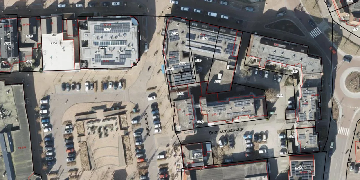 Het perceel waarop Bernhardpassage 33 staat heeft een oppervlakte van 1101 m². Dit is een zeer groot perceel. De perceeloppervlakte wordt geregistreerd door het Kadaster. Gedetailleerde informatie over de maten van dit perceel kunt u vinden in het rapport Kadastrale kaart met maatvoering van Bernhardpassage 33.
