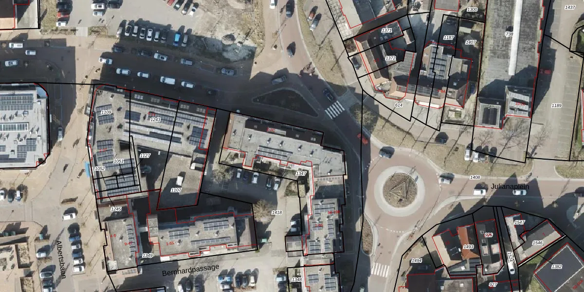 Het perceel waarop Bernhardpassage 36 staat heeft een oppervlakte van 1090 m². Dit is een zeer groot perceel. De perceeloppervlakte wordt geregistreerd door het Kadaster. Gedetailleerde informatie over de maten van dit perceel kunt u vinden in het rapport Kadastrale kaart met maatvoering van Bernhardpassage 36.