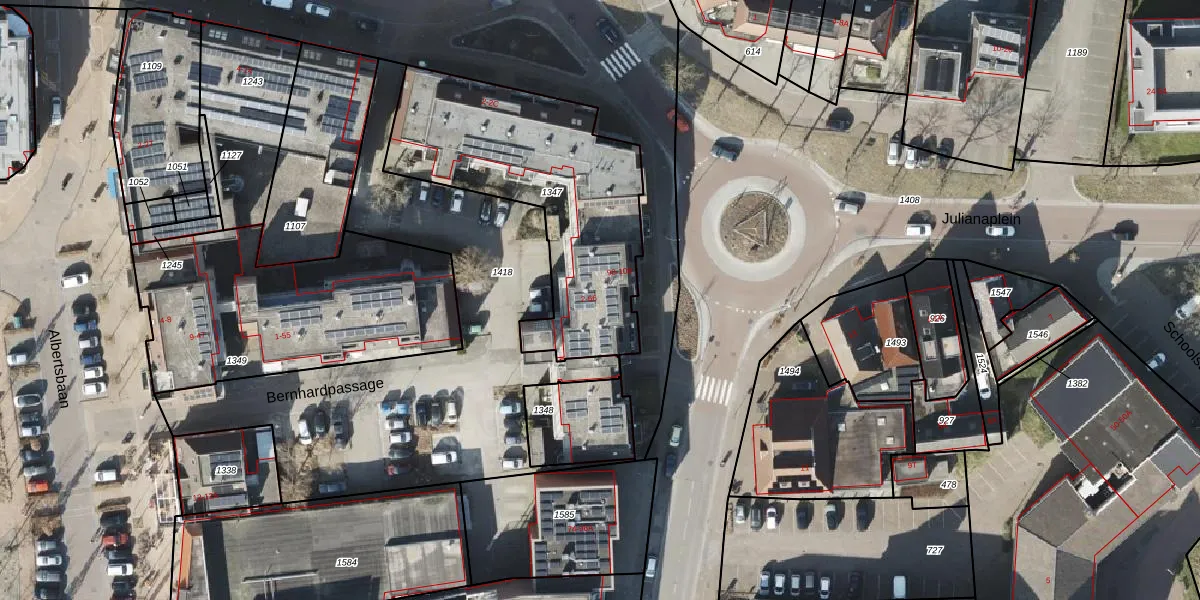 Het adres ligt op het perceel RDN01-M-1347, dat zich in de kadastrale gemeente Roden bevindt. Het perceel is kleiner dan gemiddeld in Roden. Het perceel is 1090 m² groot, terwijl het gemiddelde ligt op 5510,12 m². Het grootste perceel in de kadastrale gemeente is 1,51 km². Het kleinste perceel heeft een oppervlakte van 0 m². Op het perceel zijn 34 adressen aanwezig. In de Basisregistratie Kadaster (BRK) werden de grenzen van het perceel geregistreerd op 28-11-2003.