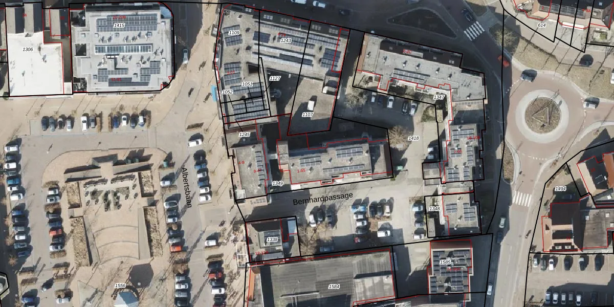 Het perceel waarop Bernhardpassage 49 staat heeft een oppervlakte van 1101 m². Dit is een zeer groot perceel. De perceeloppervlakte wordt geregistreerd door het Kadaster. Gedetailleerde informatie over de maten van dit perceel kunt u vinden in het rapport Kadastrale kaart met maatvoering van Bernhardpassage 49.