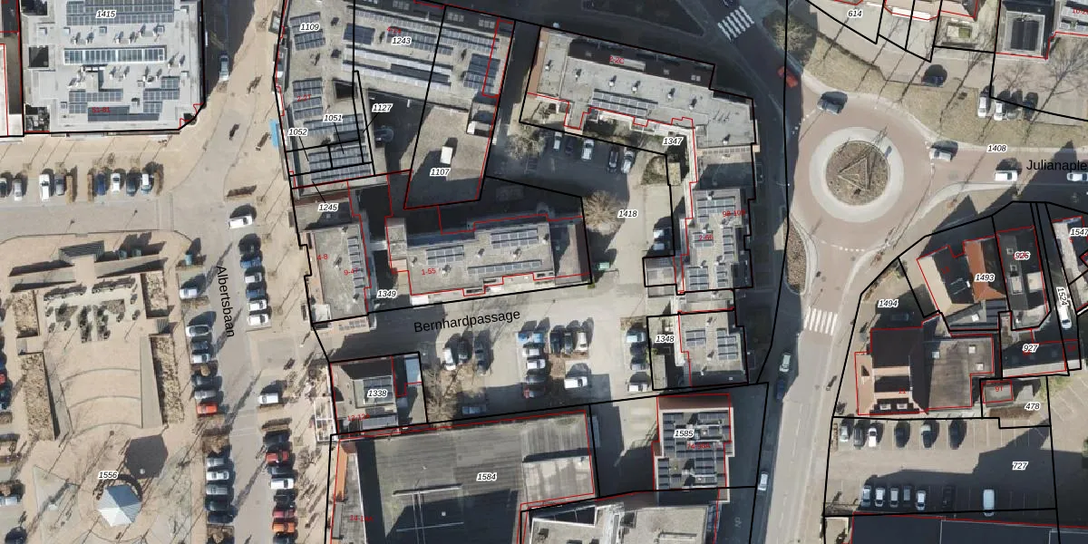 Bernhardpassage 5 is gelegen op kadastraal perceel RDN01M1349. Deze kadastrale aanduiding is uniek en wordt gebruikt door het Kadaster om eigendomsrechten en andere zakelijke rechten vast te leggen. Het perceel maakt onderdeel uit van de kadastrale gemeente Roden.