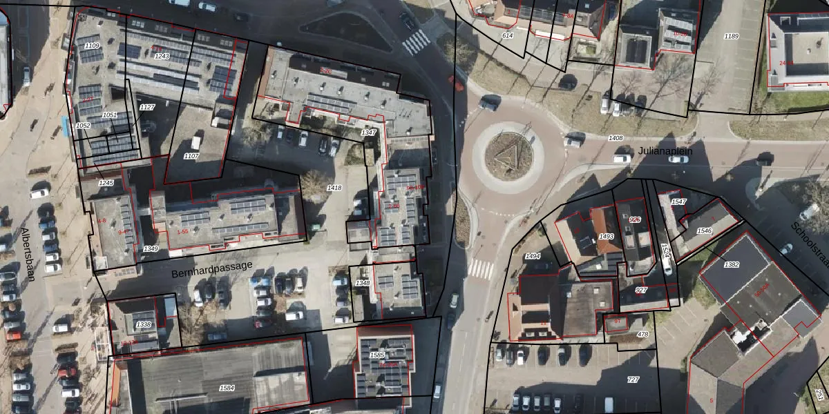 Bernhardpassage 64 is gelegen op kadastraal perceel RDN01M1347. Deze kadastrale aanduiding is uniek en wordt gebruikt door het Kadaster om eigendomsrechten en andere zakelijke rechten vast te leggen. Het perceel maakt onderdeel uit van de kadastrale gemeente Roden.