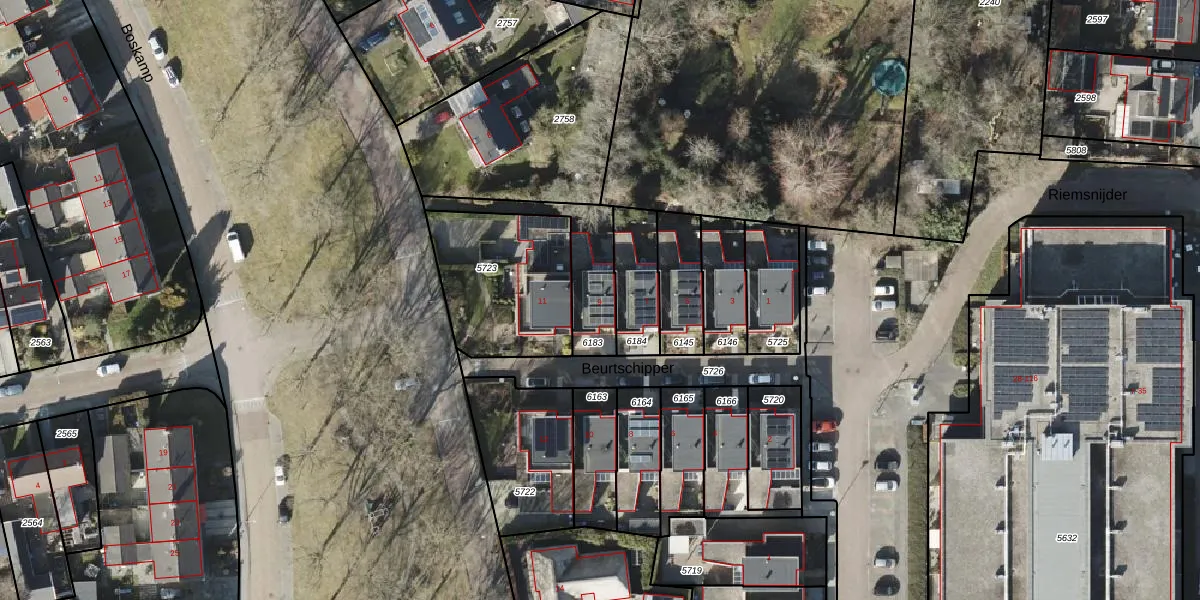 Beurtschipper 9 is gelegen op kadastraal perceel RDN01I6183. Deze kadastrale aanduiding is uniek en wordt gebruikt door het Kadaster om eigendomsrechten en andere zakelijke rechten vast te leggen. Het perceel maakt onderdeel uit van de kadastrale gemeente Roden.