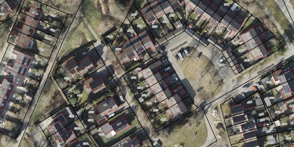 Bleijenbeek 33 is gelegen op kadastraal perceel RDN01H2531. Deze kadastrale aanduiding is uniek en wordt gebruikt door het Kadaster om eigendomsrechten en andere zakelijke rechten vast te leggen. Het perceel maakt onderdeel uit van de kadastrale gemeente Roden.
