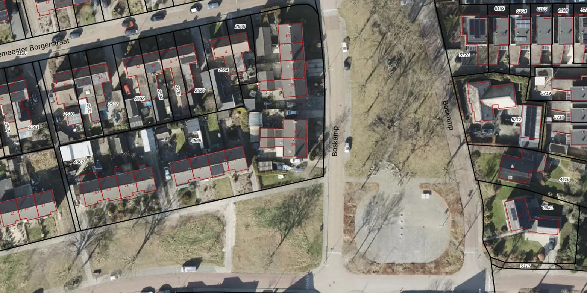 Het perceel waarop Boskamp 29 staat heeft een oppervlakte van 3344 m². Dit is een zeer groot perceel. De perceeloppervlakte wordt geregistreerd door het Kadaster. Gedetailleerde informatie over de maten van dit perceel kunt u vinden in het rapport Kadastrale kaart met maatvoering van Boskamp 29.