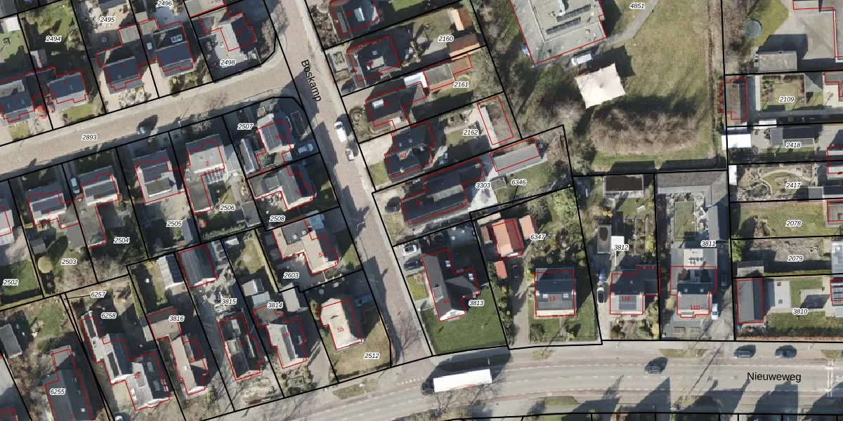Het perceel waarop Boskamp 42 staat heeft een oppervlakte van 645 m². Dit is een groot perceel. De perceeloppervlakte wordt geregistreerd door het Kadaster. Gedetailleerde informatie over de maten van dit perceel kunt u vinden in het rapport Kadastrale kaart met maatvoering van Boskamp 42.