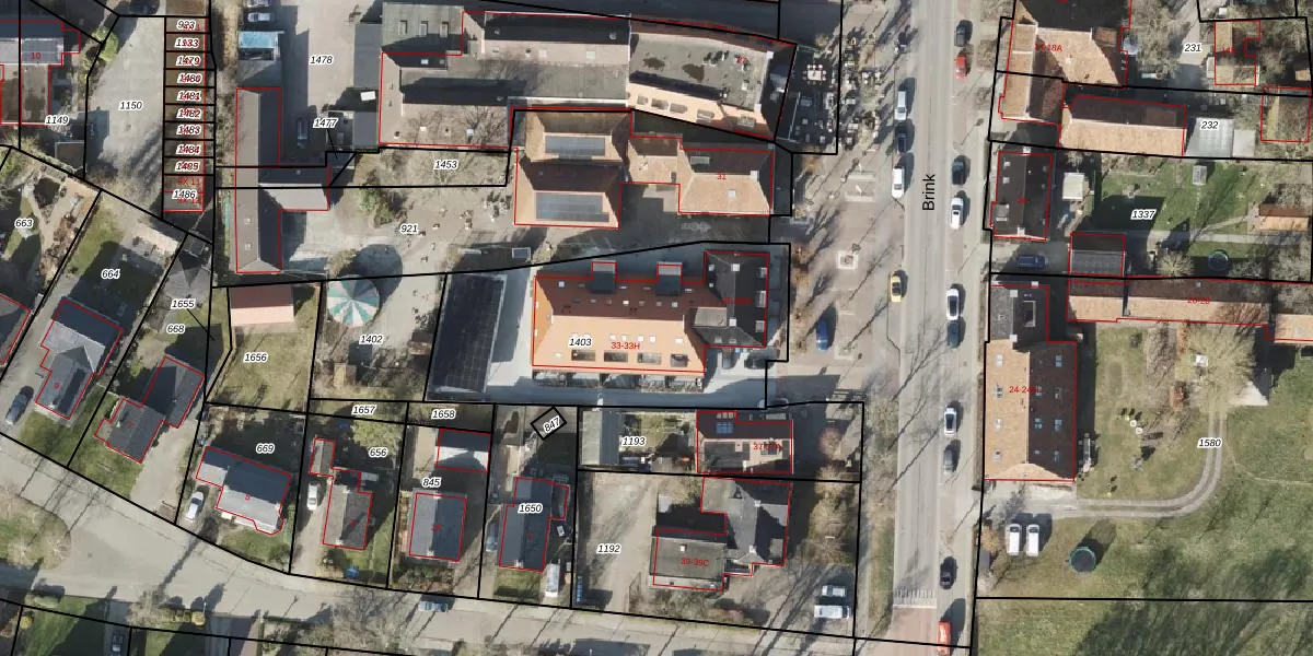 Brink 33-C is gelegen op kadastraal perceel RDN01M1403. Deze kadastrale aanduiding is uniek en wordt gebruikt door het Kadaster om eigendomsrechten en andere zakelijke rechten vast te leggen. Het perceel maakt onderdeel uit van de kadastrale gemeente Roden.