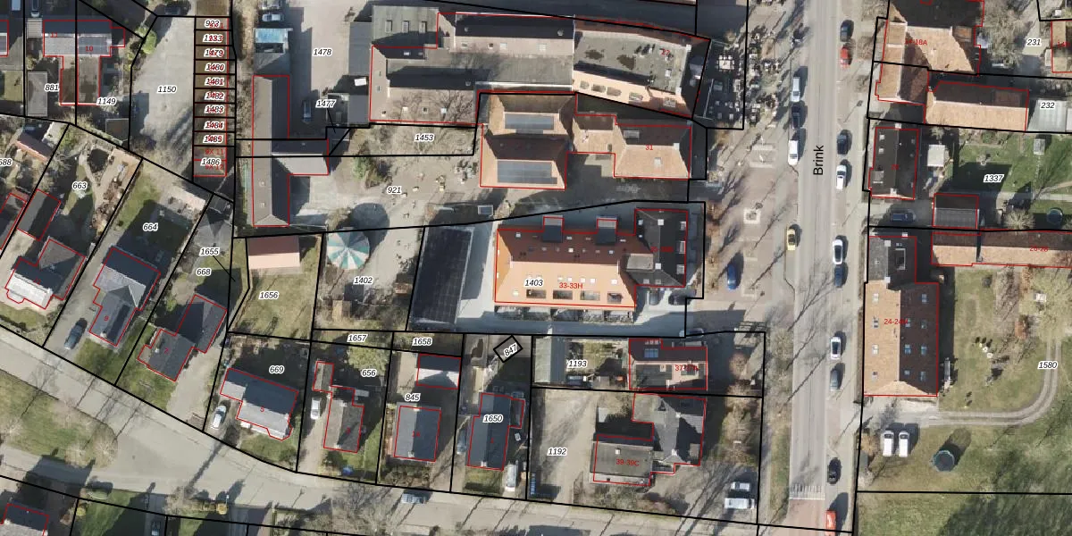 Brink 33-G is gelegen op kadastraal perceel RDN01M1403. Deze kadastrale aanduiding is uniek en wordt gebruikt door het Kadaster om eigendomsrechten en andere zakelijke rechten vast te leggen. Het perceel maakt onderdeel uit van de kadastrale gemeente Roden.